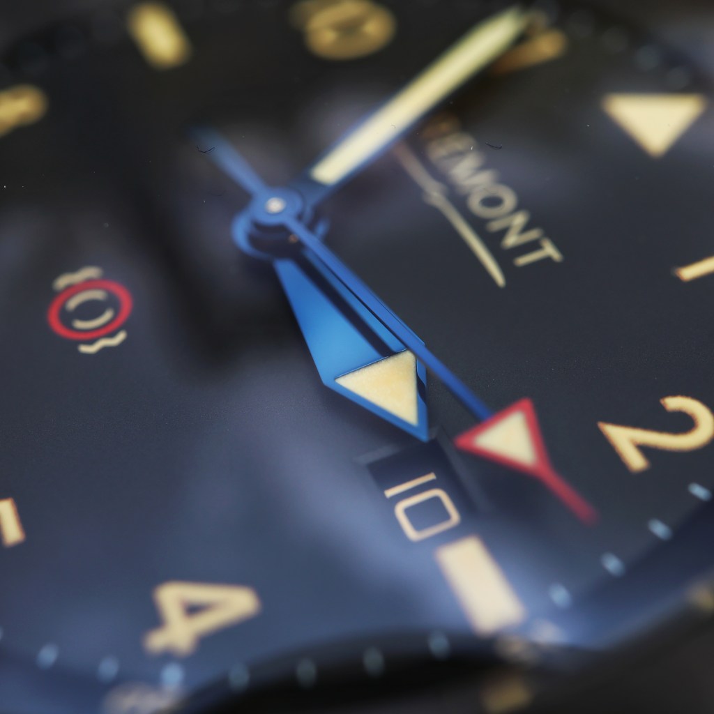 Obviously being the owner of a Jet, I am somewhat biased on the looks but I think the simple dial looks fantastic. The colour choice of the tea stain coloured numerals and markers combines with the mesmerising blued handset and red highlights just works so incredibly well.